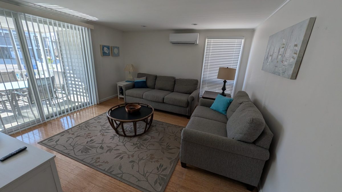 3 Bathrooms, a full Kitchen, comfortable Living Room, and covered dining deck, there is space for everyone